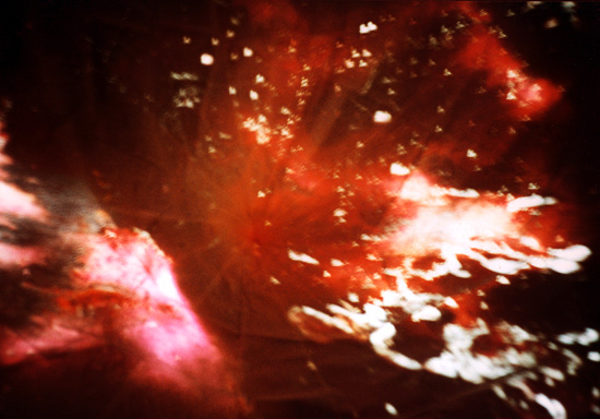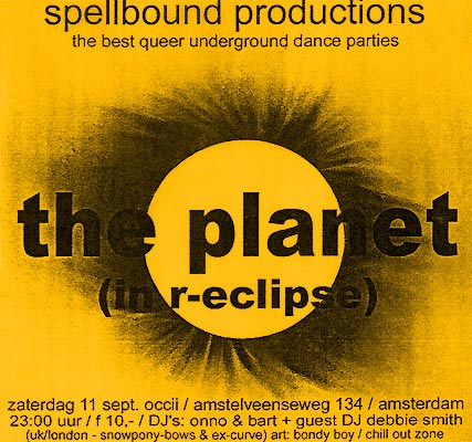 In september 1999 hebben we op een Spellbound-party rond drie uur 's nachts alle lichten bij de dansvloer zoveel mogelijk gedoofd en vervolgens een video gestart met daarop een verzameling beelden van een eclipse afomstig van diverse zenders. In april 2010 heb ik diezelfde videoband nog eens gebruikt, zoals hier op de video te zien is.